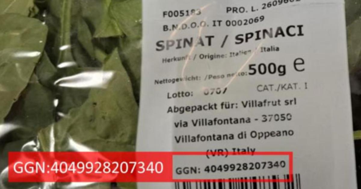 Die GGN is the identification number for agricultural producers and can be found on the product label above the barcode. Spinach products with other GGN come from other producers and are not affected.