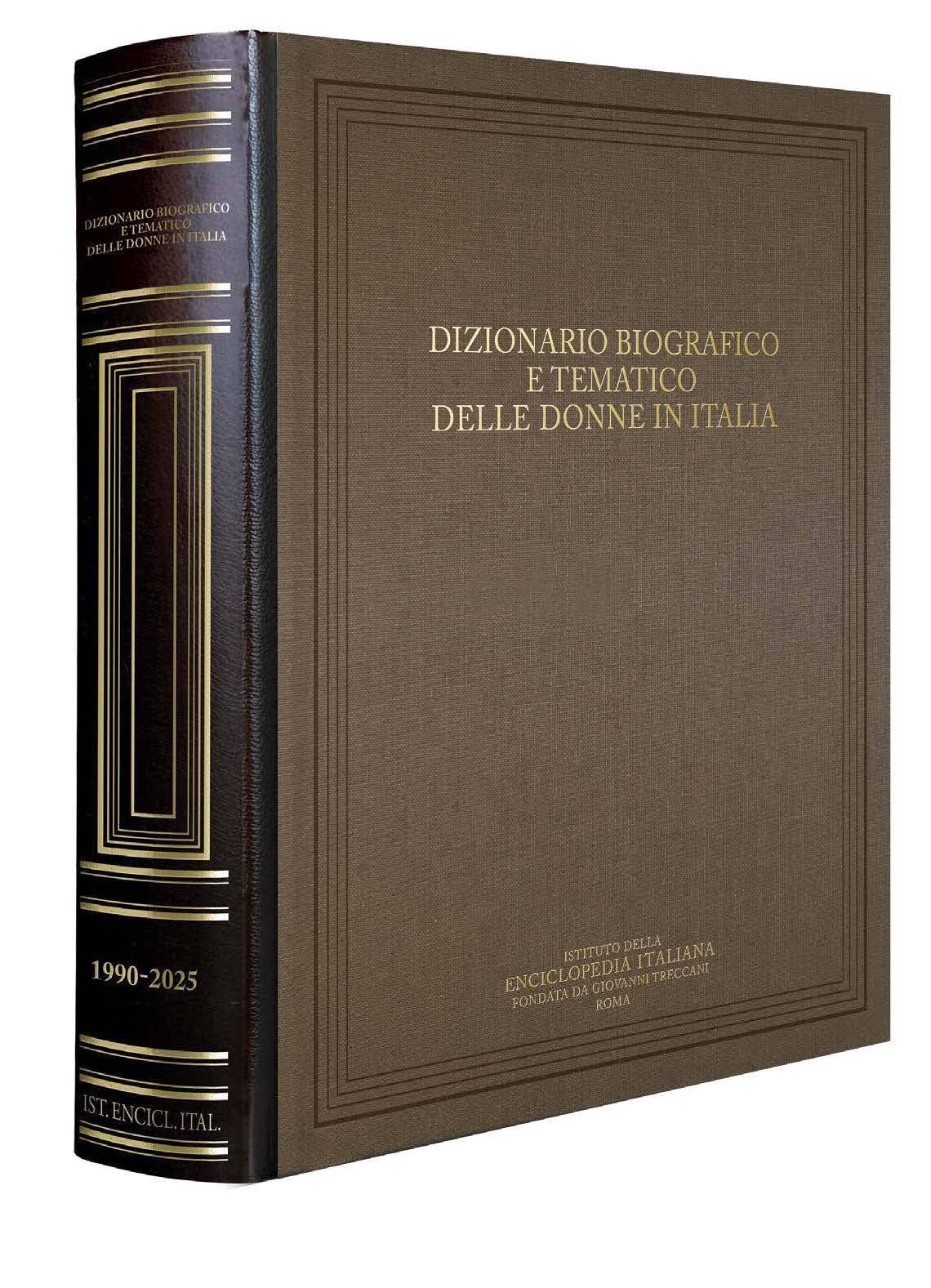 The biographical and thematic dictionary of women in Italy consists of three illustrated volumes (23.5 × 31 cm), bound in leather with gold letters and friezes. The first volume includes 760 pages and 325 images; the second 896 pages and 378 images; the third 884 pages and 354 images. (by Paolo Martini)